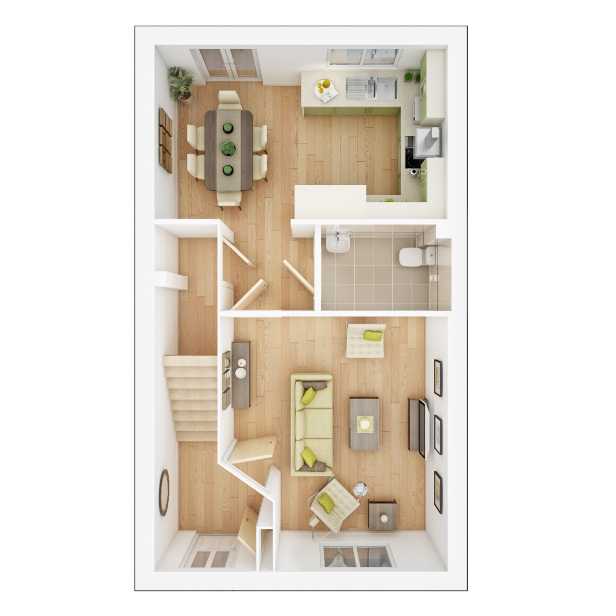 The ground floor of the Elliston features an open-plan kitchen diner to the rear, with double doors that open on to the garden. The cosy lounge is located to the front of the home.